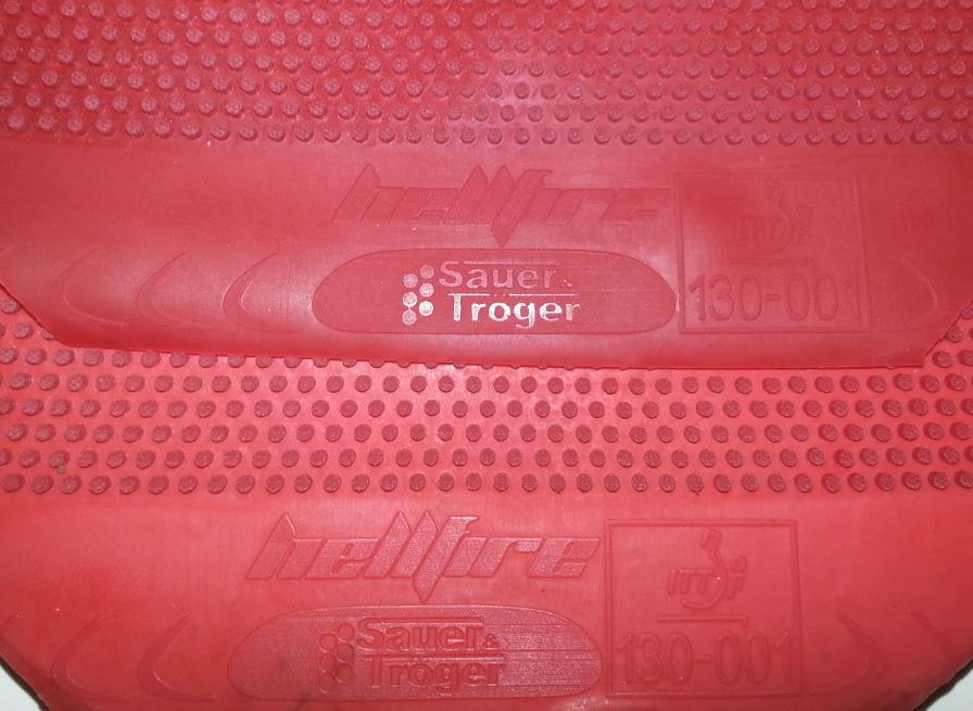 Mathduck hat geschrieben:Wirklich interessant. Über dem Wort "Hellfire" sind einmal 13 und einmal 12 Noppen. Der Unterschied liegt also nicht im Spannen oder Nachbehandeln.