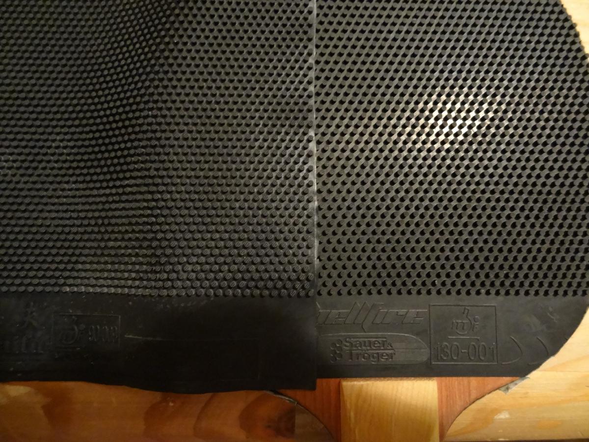 Es handelt sich hierbei um eine spezialbehandelte Version. Der Belag wurde fachmännisch behandelt (Glättung und Verhärtung der Noppen, infolge der Behandlung ist der Belag auch deutlich langsamer als der Originalbelag).