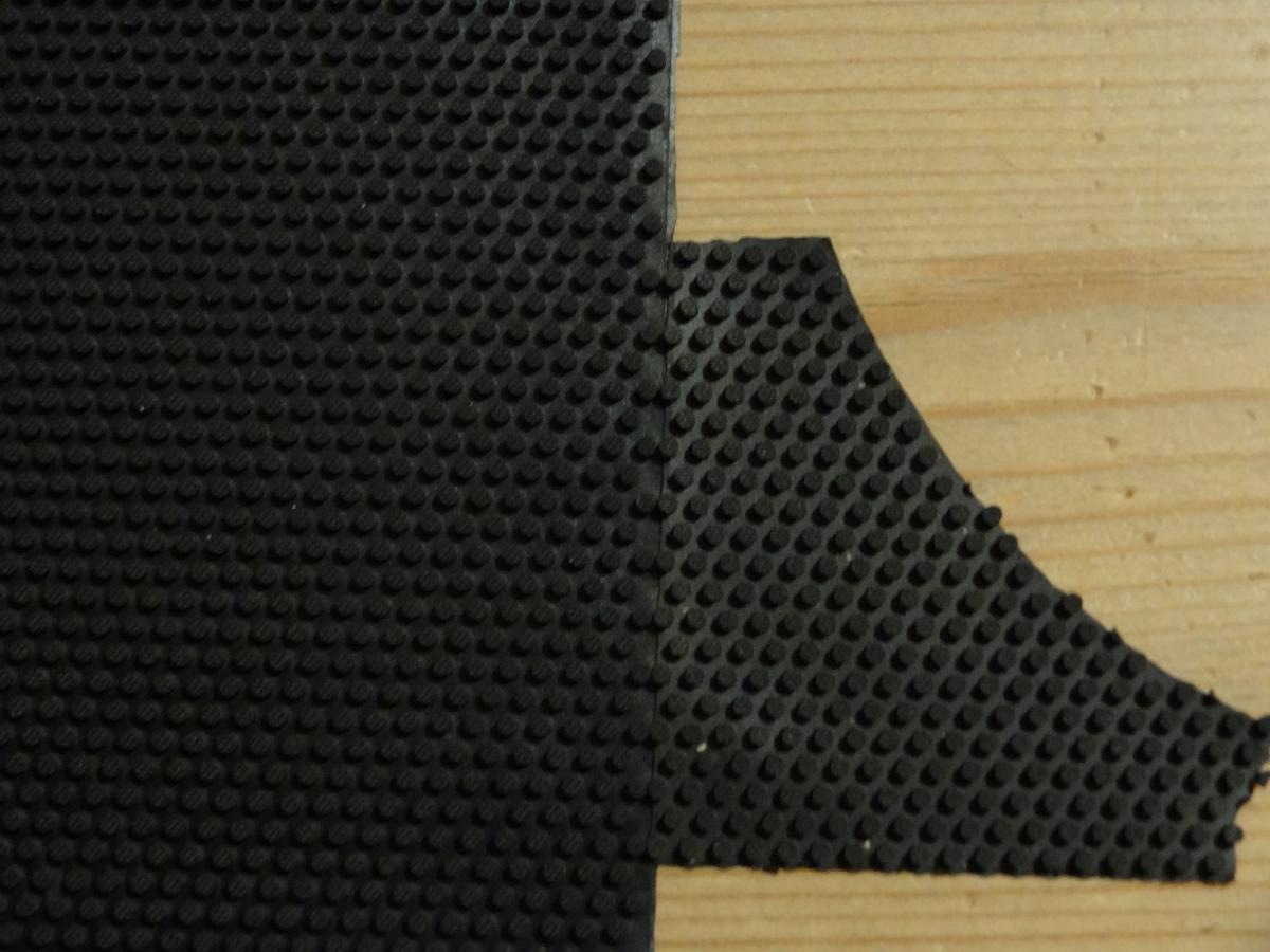 Ich habe extra mal ein Stück veschnitt geholt damit man die beiden Beläge ungeklebt nebeneinander sieht.