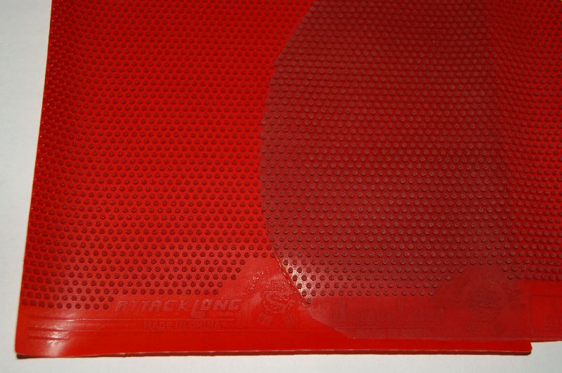 Das Besondere am Attack Long ist die Textilfaserverstärkung auf der Rückseite des Gummibodens. Dadurch fällt der Gummiboden etwas dicker aus als bei lange Noppen üblich; im Gegenzug sind die Noppen minimal kürzer als sonst üblich.