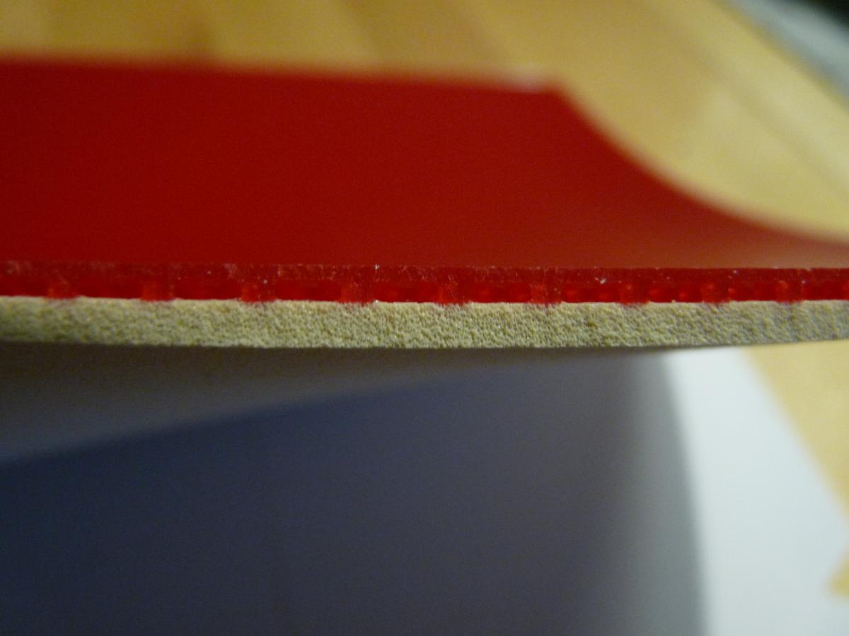 Der Schwamm ist recht porös. Nach dem kleben, der erste Dotztest... Ui, da springt der Ball nicht wirklich hoch.