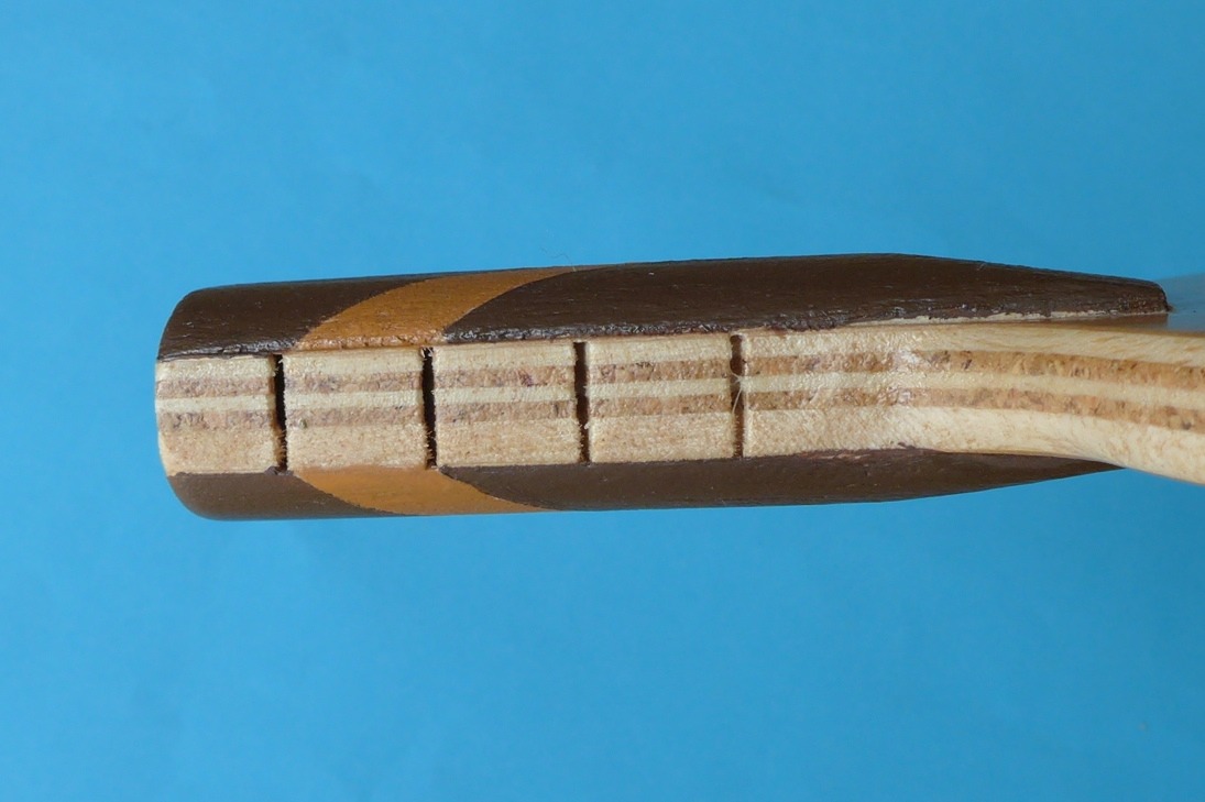 Da haben wir jetzt eine passende Quadergrainart gefunden. Es ist eine sehr feste Balsaart, aus der auch Parkettböden gefertigt werden. Jedoch sind diese Griffe schon viel schwerer und man muß mit Gewichtszunahmen von bis zu 8 g rechnen. Eine preisliche Anpassung wird auch bald bei den Produkten unter 80 € folgen müssen, denn es ist alles rund 25 % teurer geworden. Dabei werden wir dann gleich das neue Griffholz mitberücksichtigen. Das läßt sich nämlich nicht mit dem gleichen Aufwand schleifen, sondern dauert natürlich wesentlich länger.