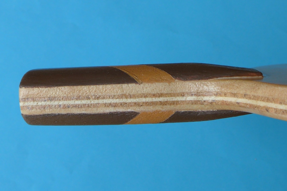 natürlich habe ich schon Griffe aus Abachi und Zeder gefertigt. Das Ballgefühl ist aber wesentlich schlechter gewesen als mit balsaverwendeten Griffen. warum. weil das Griffschalenholz fester ist, ist das Blatt auch wesentlich steifer eingefaßt als mit dem leichteren Balsa. Wenn etwas steifer wird, dann wird es u.U. auch unspielbar mit bestimmten Spielbelägen, da das Gesamtkonzept schneller wird.