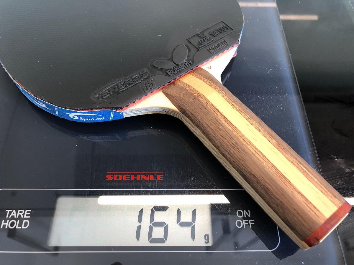 So, mein bisheriges Setup (T05 + DG) ist nun appliziert. Am Griff ist die Fette Keule etwas schmaler als meine BBCs, daher greift sie sich ein bisschen anders, und ich konnte ein paar Gramm vom T05 abschnippeln. Insgesamt ist der Schläger nun mit 164g angenehm leicht.