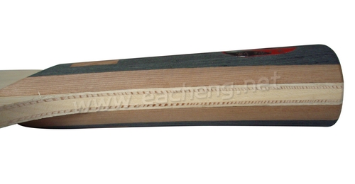 I found some additional pictures at eacheng. From those pictures I would guess that outer plies are limba and medial plies are something like spruce or fir. Probably Ayous or Basswood as core. In fact that composition looks very similar to Victas Koji Matsushita's composition (which I'm playing at the moment and which is great for modern defence), so I am very interested in trying it... Think I'm going to order one. Besides, it's a Chinese price.