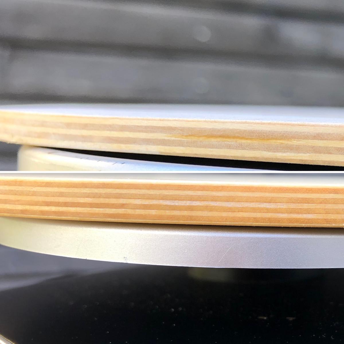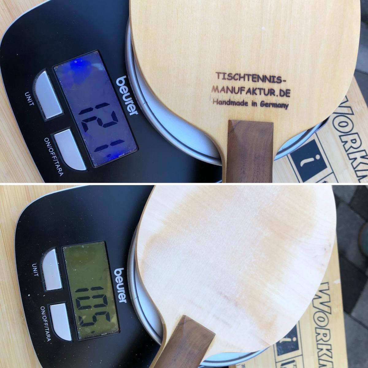 Nachdem du mich mit deinem Lindenfimmel angesteckt hast, habe ich heute zum Training mein neues Lindenblatt mitgenommen. Zuhause verlegenheitsmäßig mit dem, was 'rumlag beklebt - Globe 999T 1mm und TM/OX. Das Holz war eher ein verunfalltes Experiment mit kolossalem Gewicht, weshalb ich es auf SB zurecht gestutzt hatte. Lustlos wechselte ich dann nach einer halben Stunde zu dem Gerät, um dann :horror: damit den Rest des Abends zu verbringen :mrgreen: .