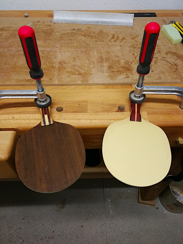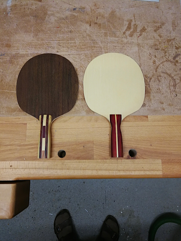 Der Griff wird fixiert - entspricht der Handhaltung - und die Blätter "arbeiten" frei. Dadurch wird der Flex des Schlägers mit einbezogen, was bei öfters mal zu einer Umkehr der Temporeihenfolge führt.