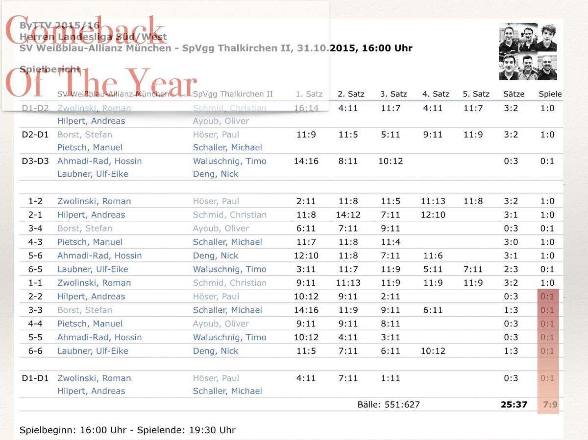 bricht merklich ein. In dieser Phase noch ein Tschooo und weiter mit konstantem Tempo spielen und nicht übermütig werden. Dann noch 1-2 direkte AS-Punkte oder mit KN Schuss auf den Return und ich muss den Kopf einziehen