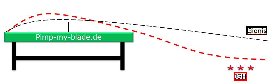 ist diese Technik aber auch ganz gut mit schnelleren VH-Belägen spielbar. Im Spiel hatte