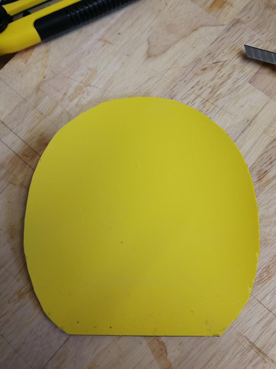 Also Edelstahlplatte, weil die gerade 'rumlag, kannst auch Resopal beschichtetes Material nehmen, halt irgendwas Glattes, kein Holz, damit nicht wieder Fasern gezogen werden.