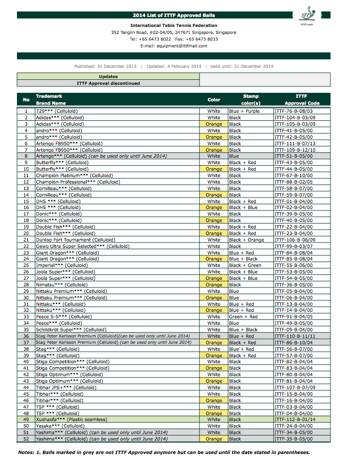 "Dr. Torsten Kueneth, Mitglied des ITTF Equipment-Komitees, beschreibt, wie sich die Daten der getesteten Bälle in den vergangenen Monaten immer mehr den ITTF-Bestimmungen genähert haben. "Am Ende sprechen wir nun nur noch von etwa einem Millimeter Abpralldifferenz oder einer etwas zu weißen Farbe", führt Kueneth aus und berichtet, dass auch die Rundheit und Größe der Bälle die Grenzwerte nicht überschreiten. Damit die Spieler die beiden offenbar doch recht ähnlichen Zelluloid- und Plastikbälle besser auseinander halten können, werden Letztere künftig mit dem Aufdruck "40+" gekennzeichnet sein."
