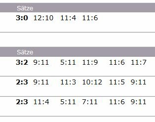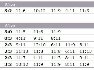 Mein erstes Spiel habe ich sehr deutlich gewonnen, bei meinem zweiten hab' ich mich schwer getan. Das war so ein langer Kerl, der durchaus auch für die Noppen unangenehme Aufschläge hatte und mir dann die Bälle ganz fies leer hingelegt hat. Hab' mich aber rein gekämpft und schließlich noch deutlich gewonnen.