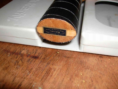 Auch wann weiß ich nicht genau, aber das letze Holz, welches ich regulär gekauft hatte war ca. 87-89 und dieses war mit kleinerem Blatt. Mein Trainer hatte auch zwei bis drei dieser Hölzer und das Älteste war ohne Metallschild am Griffende.