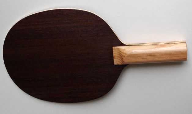 Zu meinem Erstaunen kam ich mit dieser Kombi auf Anhieb gut klar. Das Thema Noppen habe ich allerdings bereits wieder verworfen (die könnt ihr demnächst hier im Forum kaufen), und mit beidseitig NI ist dieses Holz aufgrund seines Grundgewichts und seiner Blattgröße einfach nicht mehr spielbar. Mein Interesse an Peter`s Hölzern war nun aber endgültig geweckt, und da er ja auch ein 7-schichtiges Holz mit Ipe-Furnieren gebaut hatte,