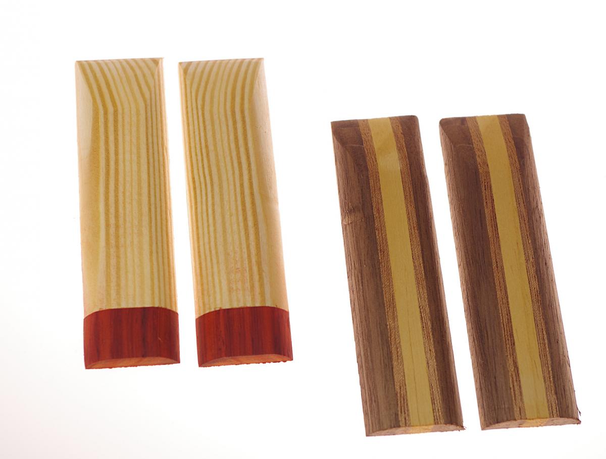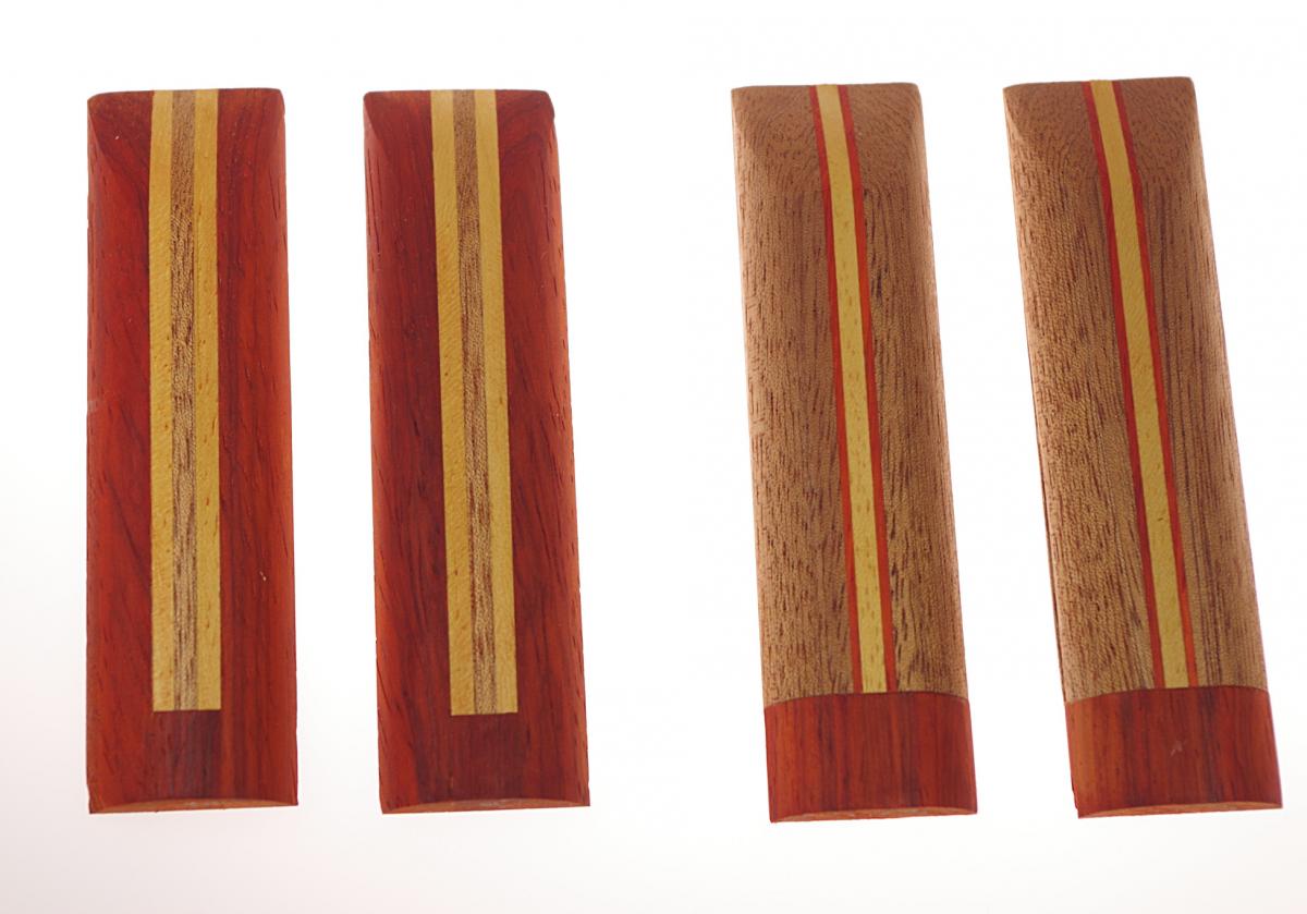 Und Maserfurniere gibt es nur in 0,6 mm, d.h. man kann sie nur in der Mitte als Streifen platzieren. Es sei denn, man begibt sich in die Gefilde der Edelholzanbieter* für Griffschalen. Und hier sind Messergriffe gemeint. Da handgearbeitete Messer meist > 1000 € liegen, spielen dann auch die 50 € für die Griffschalen keine Rolle. Für meine Hölzchen aber schon.