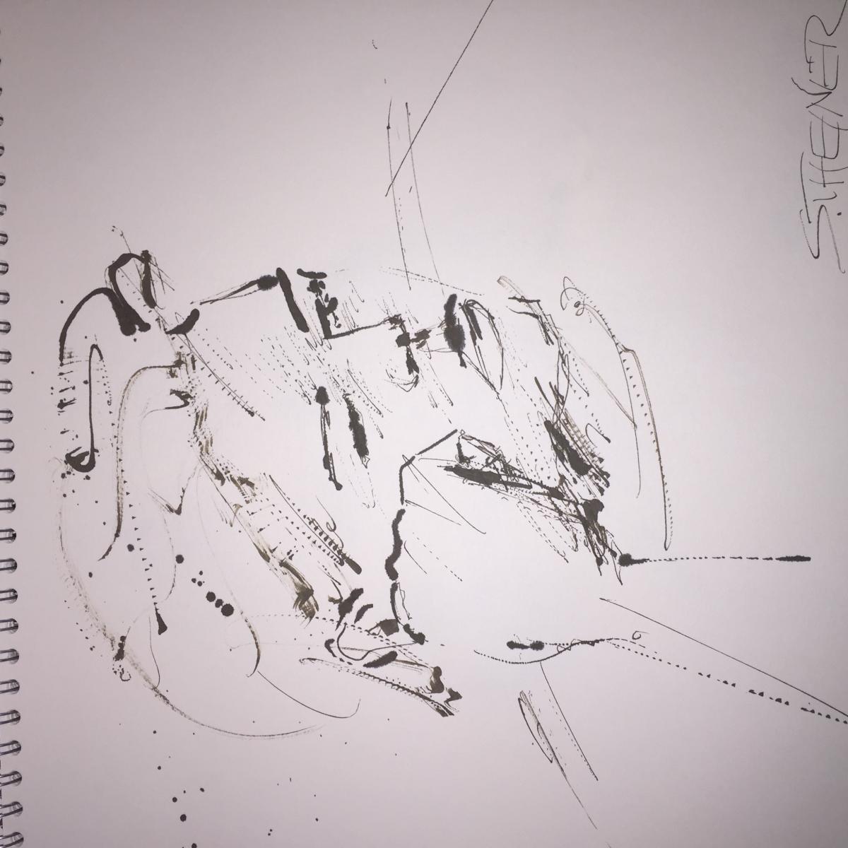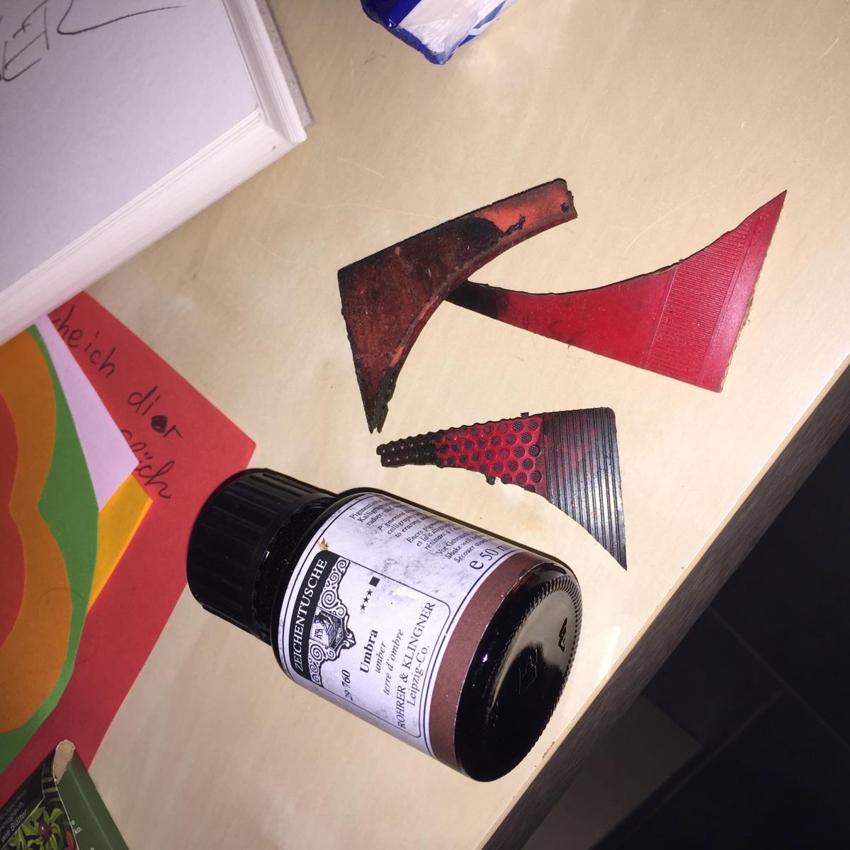 Gemalt mit Tusche und einem Stück Tischtennisbelagverschnitt: